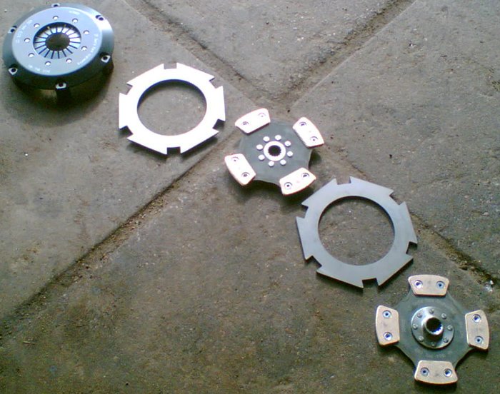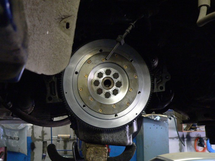 Для передачи такой мощности КПП используется двухдисковое керамическое сцепление (Фото) способное передать и большую мощность . Сцепление диаметром 184мм (Фото) на обычный маховик не поставить , для этого нужен специальный . В нашем случае был взят маховик фирмы (Фото), купленный (очень странно что хоть кто -то делает что -то подобное для OPEL ). Ну да ладно …видимо это еще со времен opel-я в ралли. Маховик полностью алюминиевый с металлической вставкой для трения с дисками сцепления .(Фото1)(Фото2) |