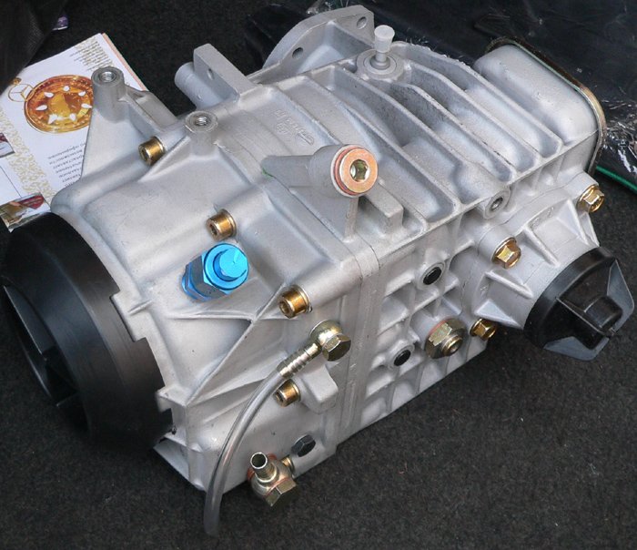 После некоторых споров по трансмиссии КПП осталась без изменений . А вот раздаточную коробку (раздатку) пришлось поменять на усиленную(Фото) . Родная умирала на первом же старте . Кстати, как раз только из-за проблем с трансмиссией мы не могли установить нужные колеса для хорошего сцепления с асфальтом . Из-за этого разгон до 100км/ч составлял 3,7сек, что отражалось и на времени прохождения всей трассы (402метра) 11.75сек .