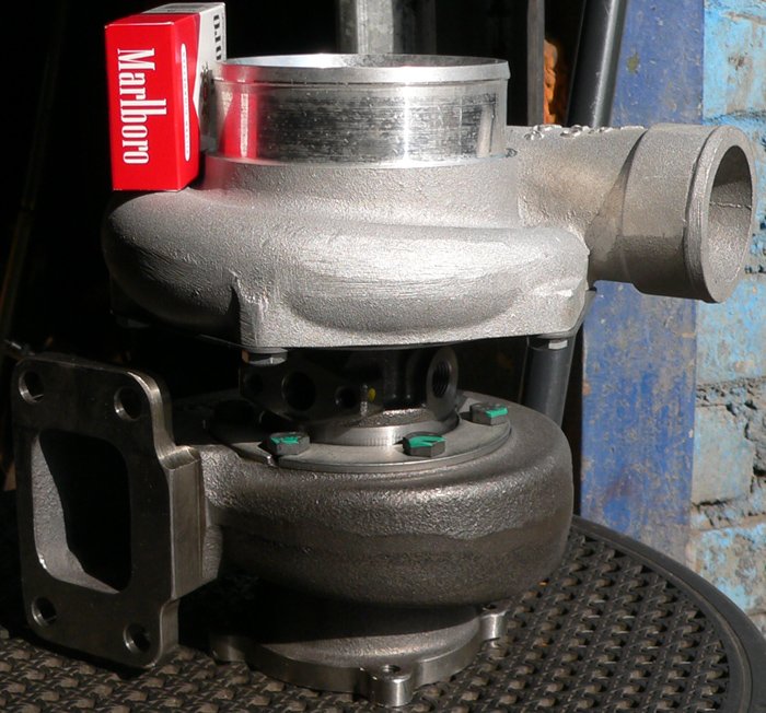 Турбина GT3588(Фото1)(Фото2) на коллекторе ,сделанного из нержавейки AISI 321(Фото1)(Фото2),надувает то ,что от нее ждут и больше ,прогоняя воздух через не маленький интеркуллер(Фото) ( ). В нашем случае не было смысла надувать больше 1.5бара избытка .Так и не дошло до настройки фаз газораспределения . Из-за этого и максимум не был достигнут .