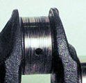 Первый способ хоть и простой но довольно точный . Принцип такой : На шейку укладывается полоска определенного диаметра мягкого материала (у разных производителей разный размер и материал ) . После этого прикручивается крышка шейки с вкладышем усилием описанным в книге по ремонту т.е. как при сборке двигателя . После этого крышка откручивается и снимается . На шейке коленвала остается расплющенная полоска , замером ширины которой можно высчитать зазор . Для упрощения подсчетов как правило в комплекте с полосками поставляется мерная линейка .